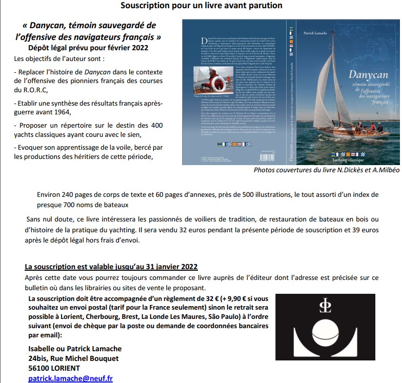 Faire gagner, toutes classes confondues et une seconde fois, à Danycan l'une des courses croisières classiques les plus mythiques sur la façade atlantique, course qu'il a donc déjà gagnée en 1957 avec Guy Tabarly en tant que skipper, c'est une occasion inégalable de vous remercier pour la confiance que vous , vos collègues, vos collaborateurs et/ou vos responsables avez investie dans ce projet.